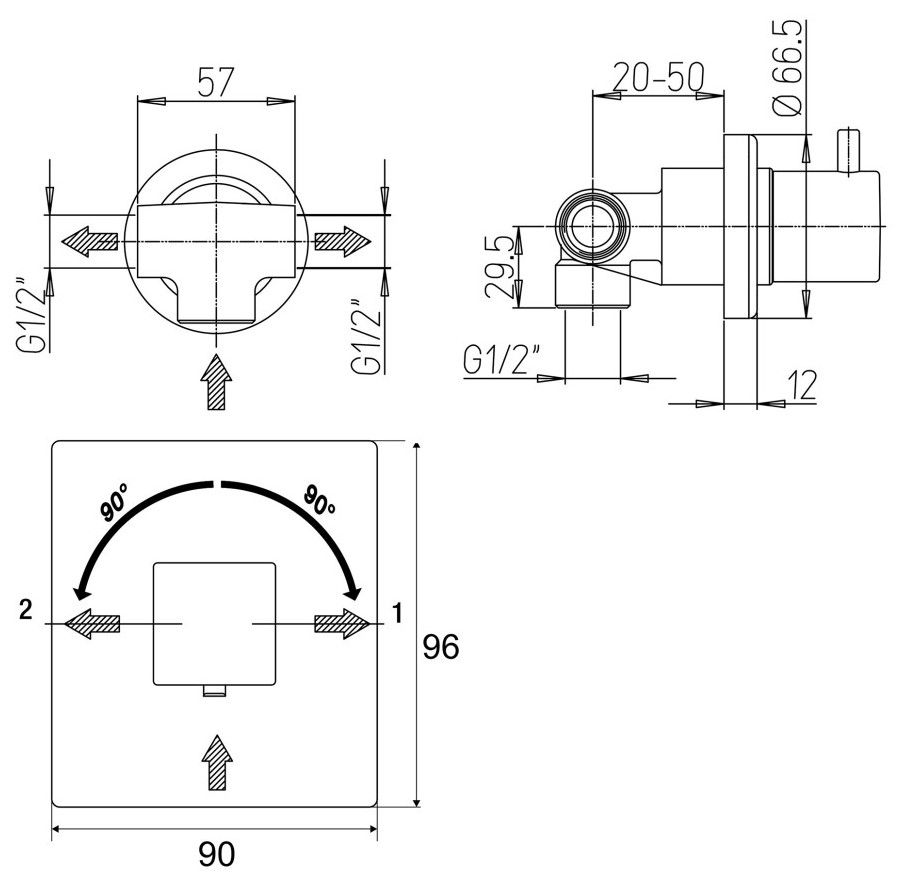 Встраиваемый дивертор Paini Grazia 21CR425 на два выхода хром купить