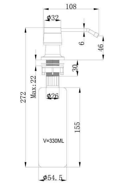 Встраиваемый дозатор для мыла Латунь, ABS - пластик.