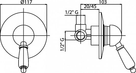Встраиваемый однорычажный смеситель для душа, бронза Cezares VINTAGE-DIM-02-Sw