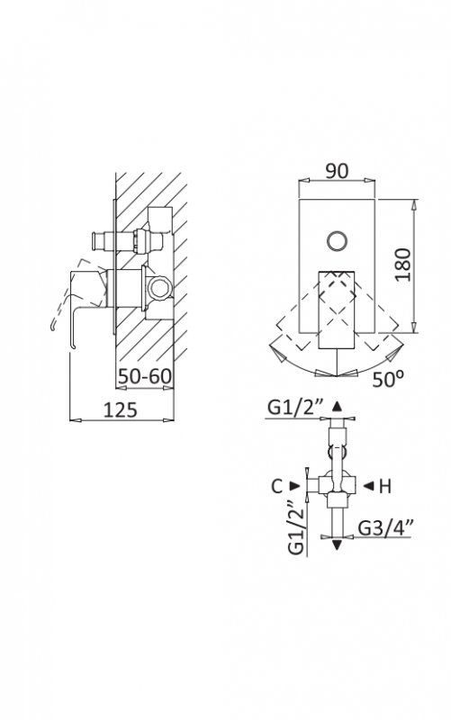 Тип подводки: внутренний (скрытый) монтаж 1/2"
