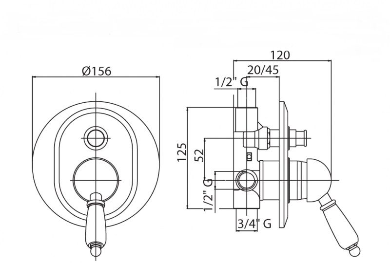 Встраиваемый однорычажный смеситель для душа с переключателем, бронза Cezares ELITE-VDIM-03/24-Bi