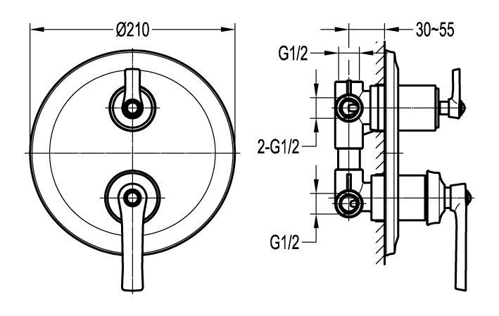Встраиваемый смеситель c 3-х позиционным переключателем, хром Cezares LIBERTY-F-VDIM3-01