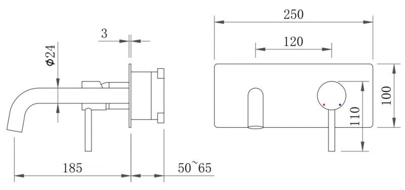 Смеситель из стены на планке, с удобной поворотной ручкой для регулировки температуры выходящей воды. Выполнен в современном стиле, а так же максимально универсален, благодаря цвету исполнения.Встраиваемая система
