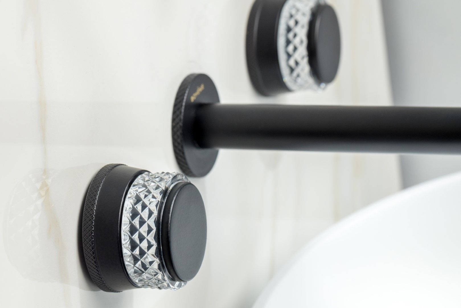 Пожалуй самая эксклюзивная коллекция смесителей и акcессуаров Boheme. Очень много ручного труда от итальянских мастеров. Основной акцент- декор из хрустального стекла, фрезерованного вручную, дополнен сдержанным дизайном излива. Эталон элегантности и роскоши. Смеситель для раковины Boheme Aura 152-2-B-A, встраиваемый, цвет черный