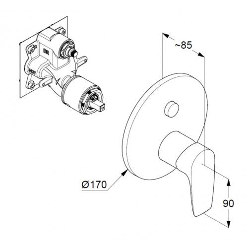 Встраиваемый смеситель для ванны и душа Kludi Pure&Solid хром 346590575
