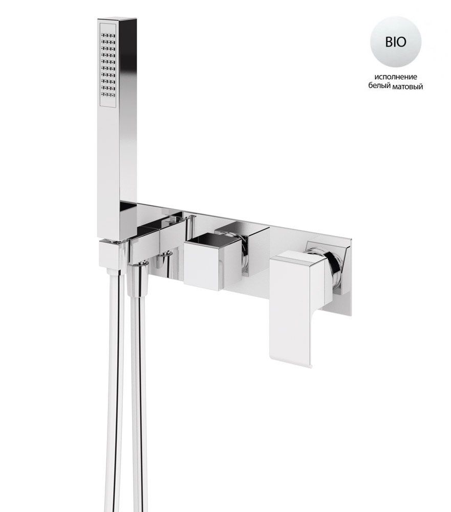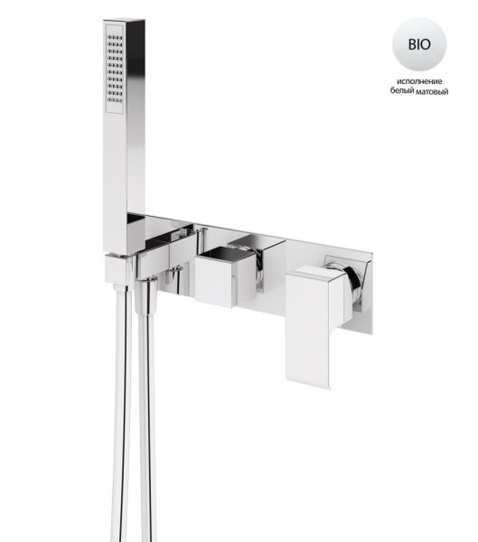 Встраиваемый смеситель для ванны и душа однорычажный, на 3 выхода, в комплекте с ручным душем, белый матовый Cezares PORTA-VDM2-BIO купить