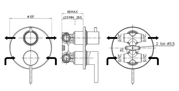 - Встраиваемый монтаж скрывает все соединения и оставляет на виду только рычаг управления, экономя пространство.