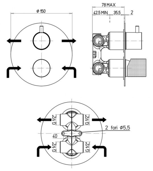 Минимализм, призванный заботиться о вас, в новой форме COX GRIP! Встраиваемый смеситель для душа представляет функциональность и традиционное качество PAINI. Данный смеситель позволяет распределить поток воды на два выхода и подключить несколько устройств, например, верхний душ и ручную лейку. Встраиваемые смесители PAINI поставляются в полном сборе - внутренняя и внешняя часть. Современные технологии позволяют экономить воду и заботиться об окружающей среде.