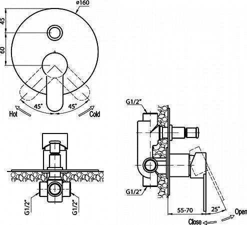 Тип подводки: внутренний (скрытый) монтаж 1/2"