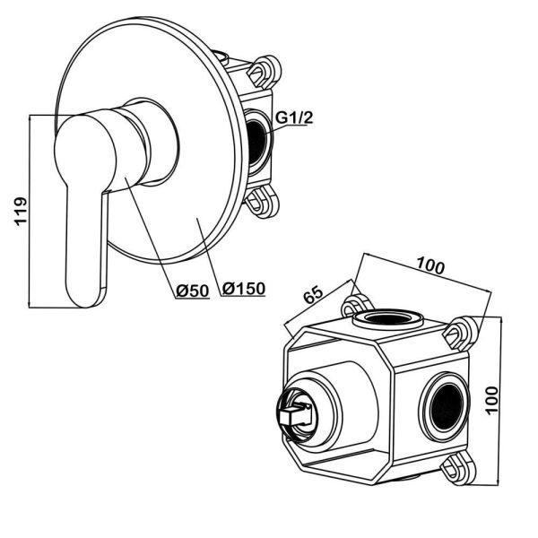 Встраиваемый смеситель Swedbe Platta 5523 подключение на один выхода хром
