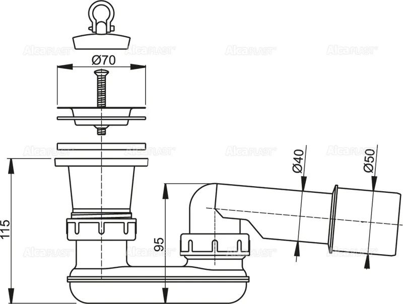Выпускной комплект для душевого поддона AlcaPlast с гидрозатвором A461-50