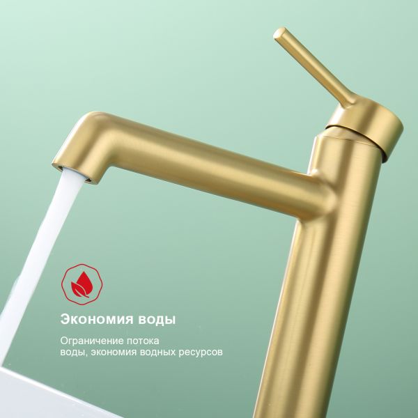 Высокий смеситель для раковины Raglo R20.15.03 золотой сатин