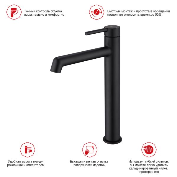 Высокий смеситель для раковины Raglo R20.15.06 чёрный купить