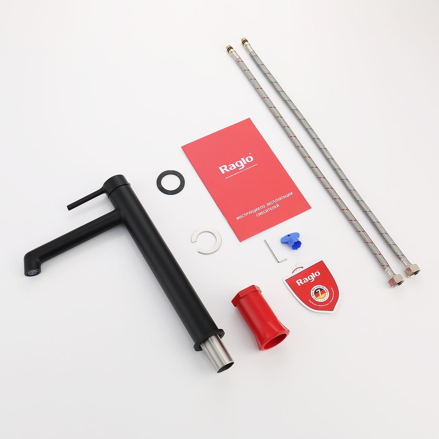 Смеситель для раковины RAGLО имеет повышенную прочность корпуса. Соответствует требованиям международного стандарта. Одна рукоять для регулировки воды. Аэратор гарантирует одинаковый поток воды, сеточка рассеивает напор, вода смягчается. Смеситель устанавливается на гайке, нижняя часть смесителя вставляется в отверстие для монтажа и затягивается гайкой для фиксации. Данный смеситель для умывальника имеет надежный стационарный излив, не меняющий своего положении. Смеситель прекрасно смешивает потоки воды, а помимо этого обладает невысоким показателем шумов. Быстрый монтаж. Крепление на усиленной гайке. Подводка длиной 55 см имеет латунные гайки. Гарантия на смеситель 7 лет и 2 года на покрытие.