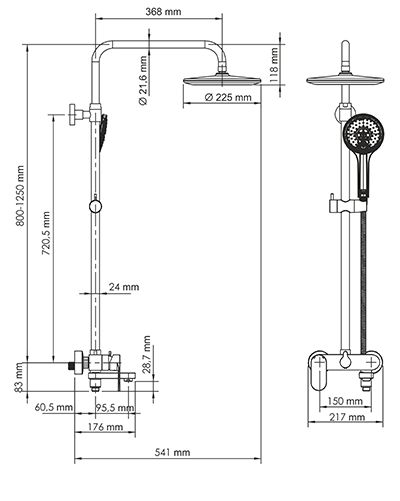 - Стойка для душа, Ø 24 мм регулируемая по высоте