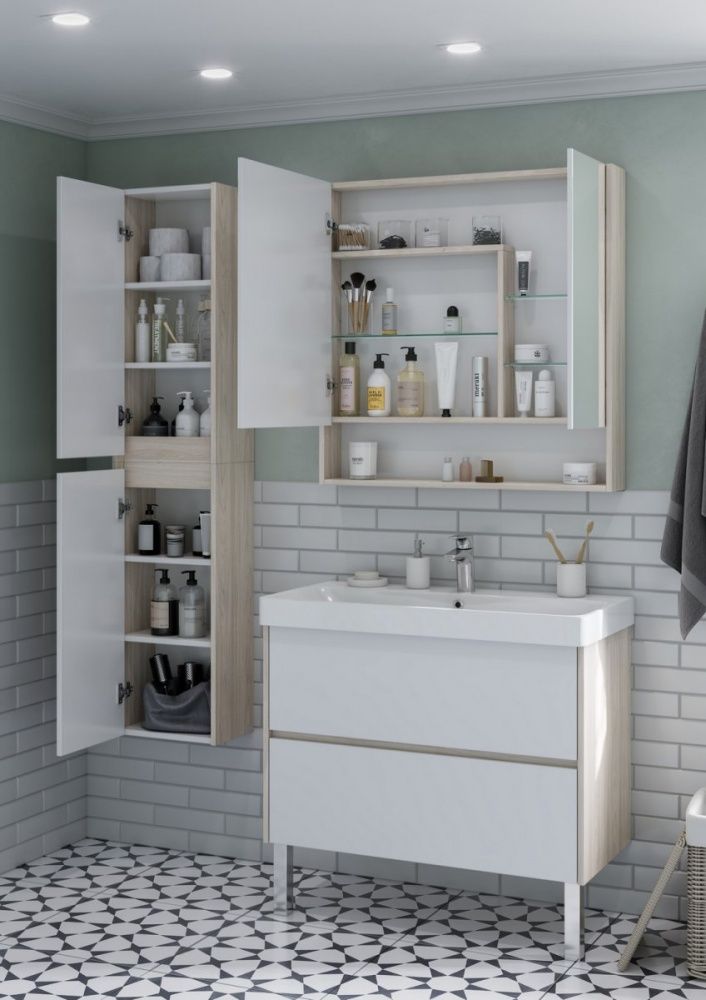 Зеркальный шкаф Акватон Сканди 90см белый/дуб верона 1A252302SDB20
