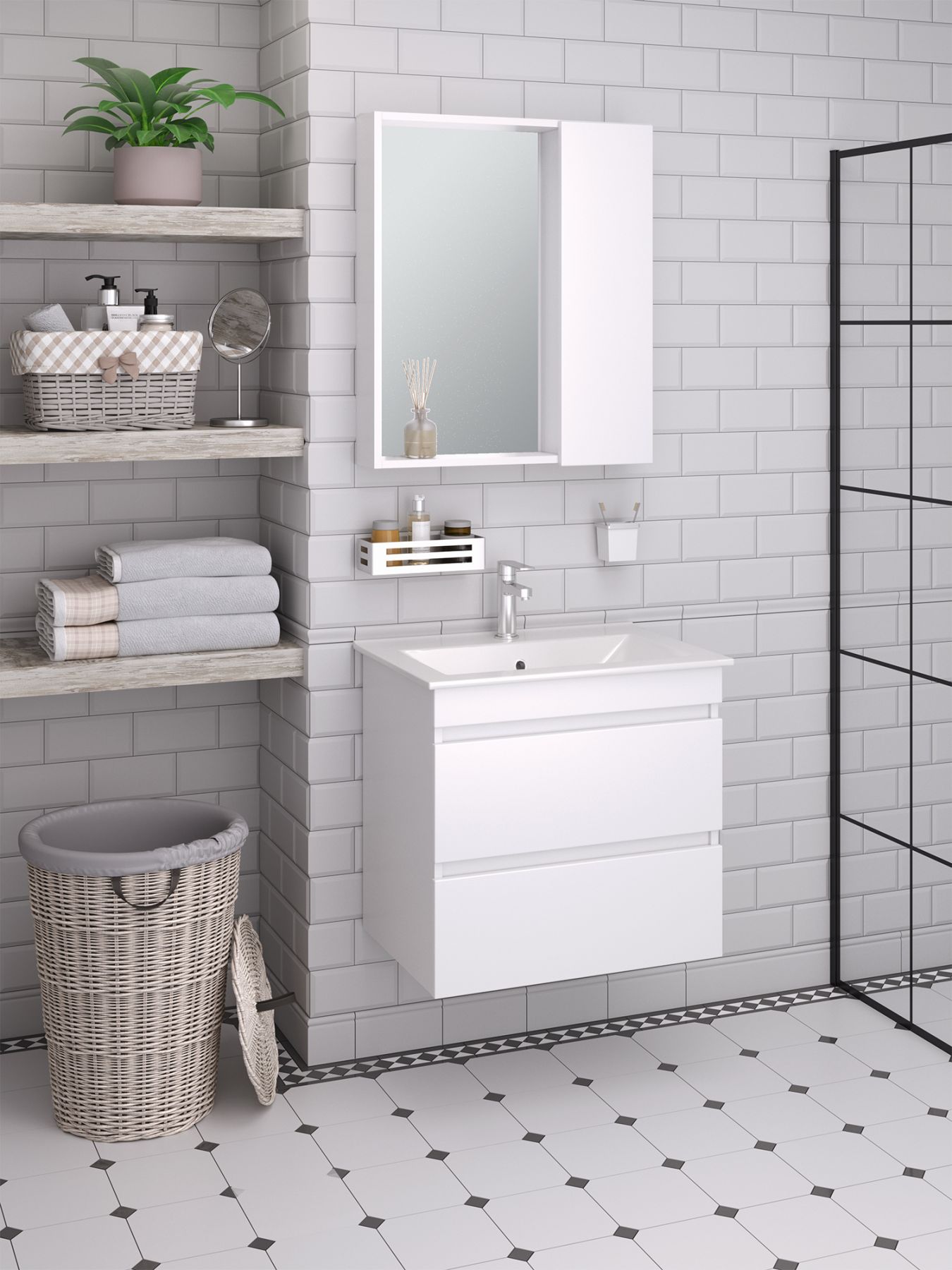 Зеркальный шкаф Runo белый Манхэттен 65 (00-00001044) купить