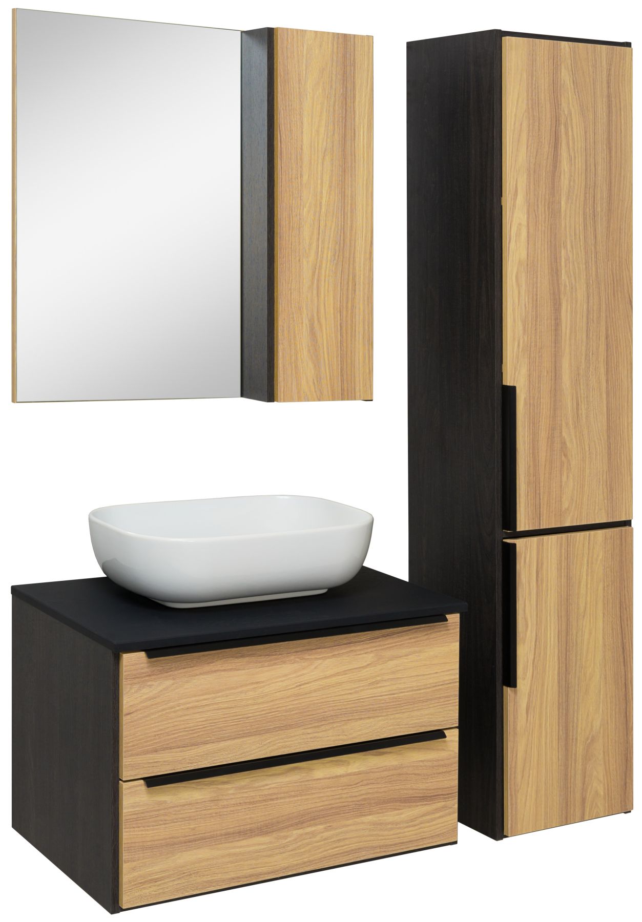 Зеркальный шкаф Runo дуб черный Мальта 70 (00-00001101)