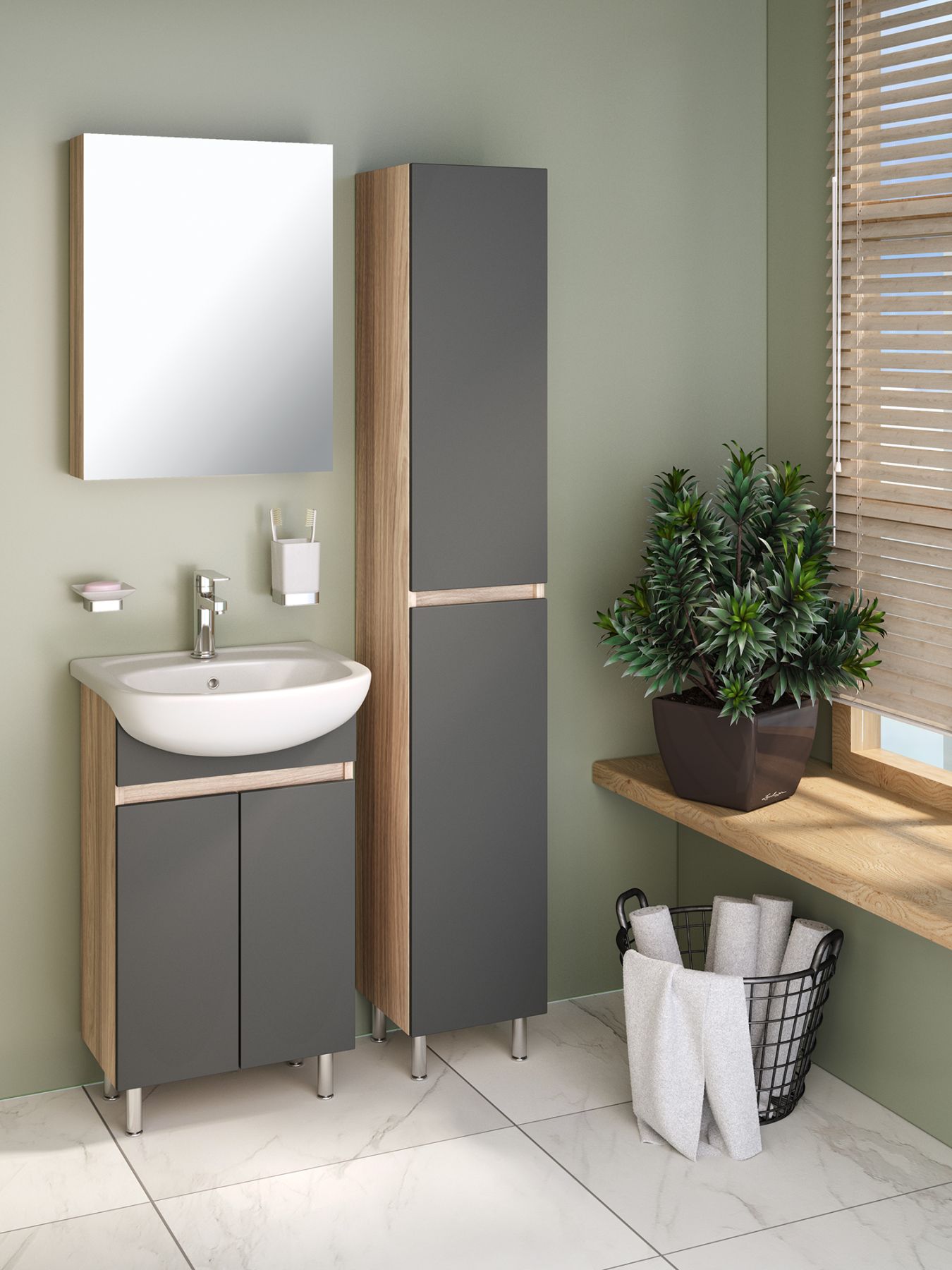 Зеркальный шкаф Runo графит Лада 50 (00-00001160)