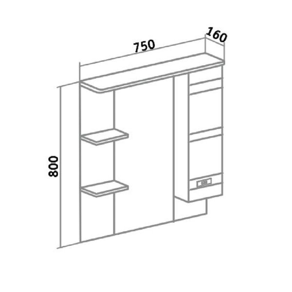 Зеркальный шкаф Runo правый Турин 85 (УТ000002105)