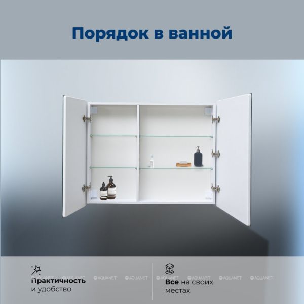 Зеркальный шкаф Aquanet Оптима 100 с LED подсветкой – практичное решение для современного интерьера.