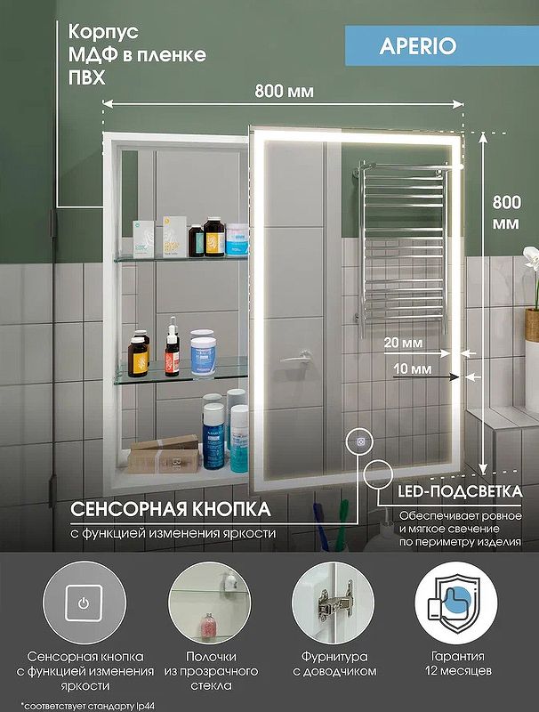 Зеркальный шкаф с подсветкой Misty Аперио 80см правый белый купить