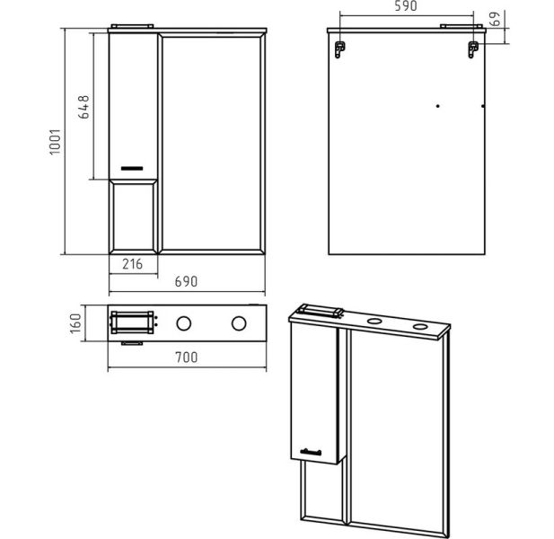 Зеркальный шкаф с подсветкой Misty Терра 70см правый серый