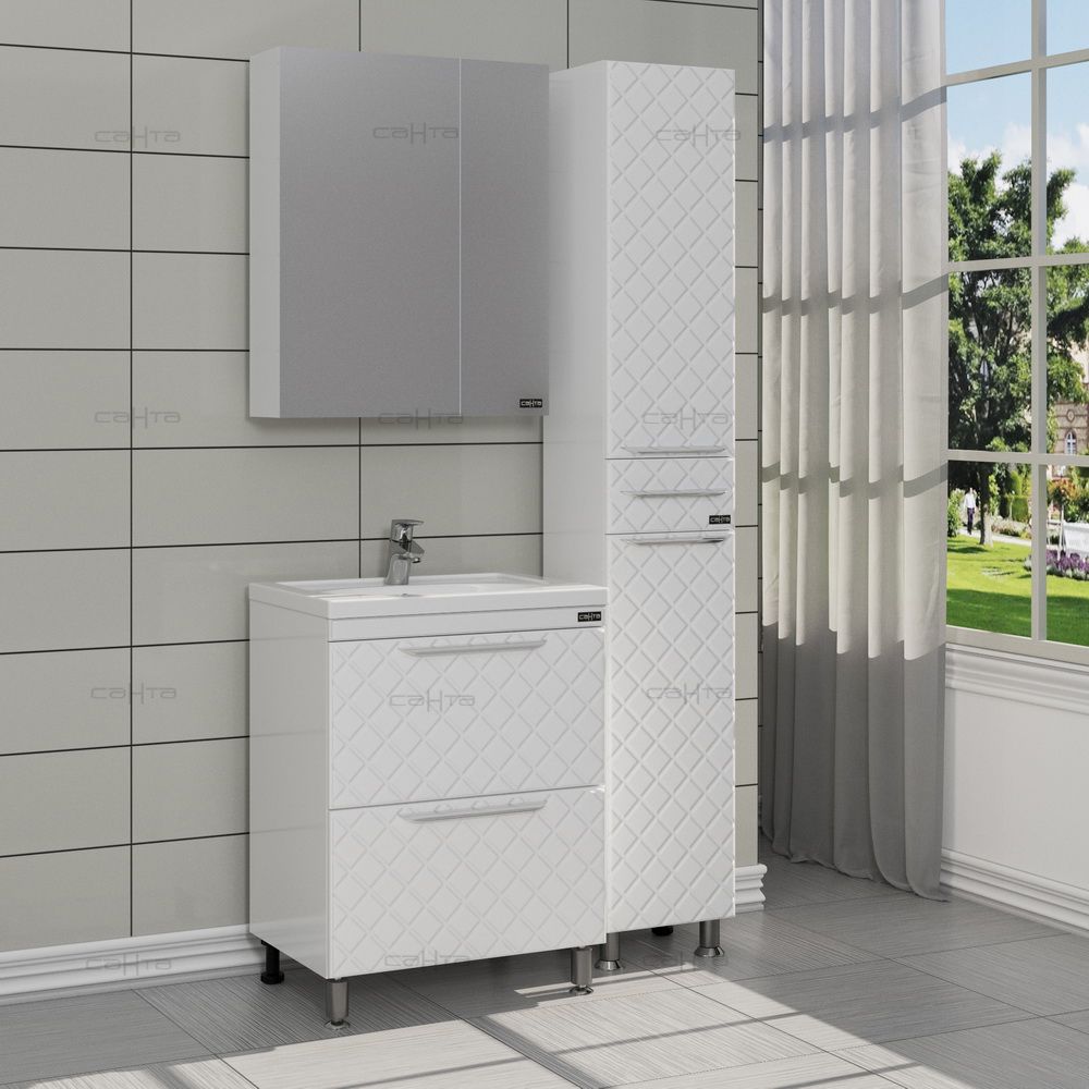 Зеркало-шкаф СанТа не только функциональный предмет интерьера ванной комнаты, но замечательное эргономичное дополнение дизайна, как небольшого, так и крупного помещения.Компания СанТа использует при производстве высококачественные водоотталкивающие материалы (ВЛДСП), соответствующие всем необходимым требованиям безопасности. Серия отличается превосходным дизайном с соблюдением всех значимых элементов современного стиля. Основным цветом, в котором выполнено шкаф-зеркало СанТа является белый, отлично подходящий большинству дизайнерских решений. Шкаф-зеркало предусматривает удобную и вместительную систему хранения, состоящую из полочек.Страной бренда СанТа является Россия, все товары производятся с выполнением соответствующих стандартов качества, что позволяет быть полностью уверенными в долговечности и надежности. Зеркало-шкаф СанТа это абсолютный комфорт в современной ванной комнате.