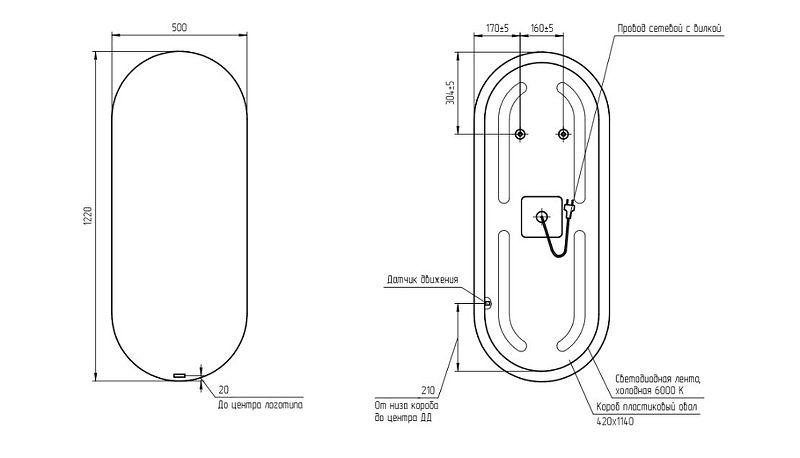 Тип:зеркало с подсветкой