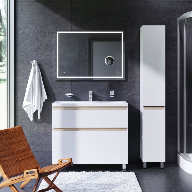 Ультрамодный лаконичный дизайн зеркал Gem от собственной студии дизайна AM.PM Design подойдет к интерьеру любой ванной комнаты. Премиальный функционал в коллекции доступного ценового сегмента: встроенное косметическое зеркало, увеличивающее изображение, и часы прямо под стеклом - всегда на виду.Усиленная LED-подсветка по периметру обеспечивает отличное рассеянное освещение и отсутствие теней. Срок службы светодиодов составляет более 30 000 часов.Скрытый механический выключатель сохраняет эстетическую целостность дизайна зеркала, а также гарантирует отсутствие отпечатков пальцев на зеркальном полотне.