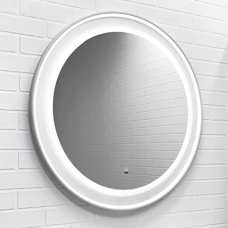 Зеркало Comforty Ереван 00-00014142 70 см Белое матовоеВысококачественное зеркальное полотно с амальгамой на основе серебра. Зеркало оборудовано ореольной и фронтальной Led подсветкой с бесконтактным включателем со встроенной функцией регулировки яркости. Основа зеркала из МДФ фрезерована кантом по периметру и облицована в матовую пленку белого цвета.Функция диммирования - данная функция позволяет регулировать яркость подсветки от минимального до самого яркого, что особенно удобно для создания комфортного освещения.Бесконтактный выключатель - использование бесконтактного выключателя обеспечивает удобство в эксплуатации, позволяя включать и выключать подсветку простым движением руки, при этом поверхность зеркала остается чистой.Характеристики:Цвет корпуса: белый матовый.