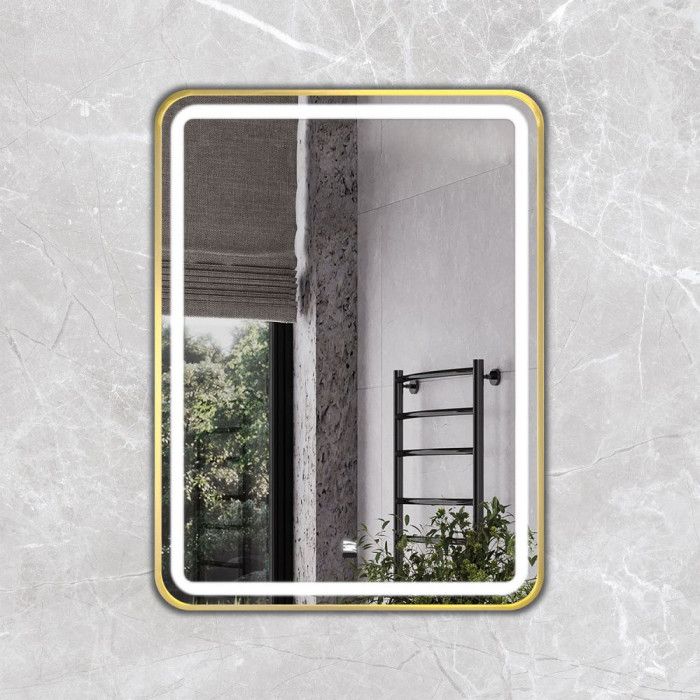 Зеркало Comforty Ситара-60 00-00017863 золотоЗеркало в золотой алюминиевой раме 60 см для ванной комнаты Comforty Ситара-60, LED-подсветка, бесконтактный сенсор, антизапотевание 00-00017863 Зеркальное полотно матовое без лицевой фурнитуры Россия Гарантийный срок 2 года Производитель: Comforty Коллекция: Ситара Артикул: 00-00014160CF Габаритные размеры ШхВхГ: 600*800*31 мм Высококачественное зеркальное полотно с амальгамой на основе серебра Цвет рамы: матовое золото Материал рамы: анодированный алюминий Функция антизапотевания Зеркало с фронтальным типом подсветки оснащено выключателем с бесконтактным сенсором Функция диммирования - регулировка яркости подсветки от минимального до яркого. Подсветка из светодиодной ленты с классом защиты IP20 Яркий и равномерный свет мощностью 800 Лм/м Температура свечения 6500К, идеально яркий и естественный свет Подключение к сети 220В с помощью евровилки. Длина кабеля - 950 мм Зеркало в алюминиевой раме со светодиодной подсветкой Рама зеркала выполнена из брашированного алюминиевого профиля Профиль рамы обладает повышенной устойчивостью к механическим повреждениям, коррозии и перепадам температур Радиус скругления профиля – 60 мм При изготовлении рамы зеркала используется метод анодирования, который формирует прочный и тонкий оксидный слой