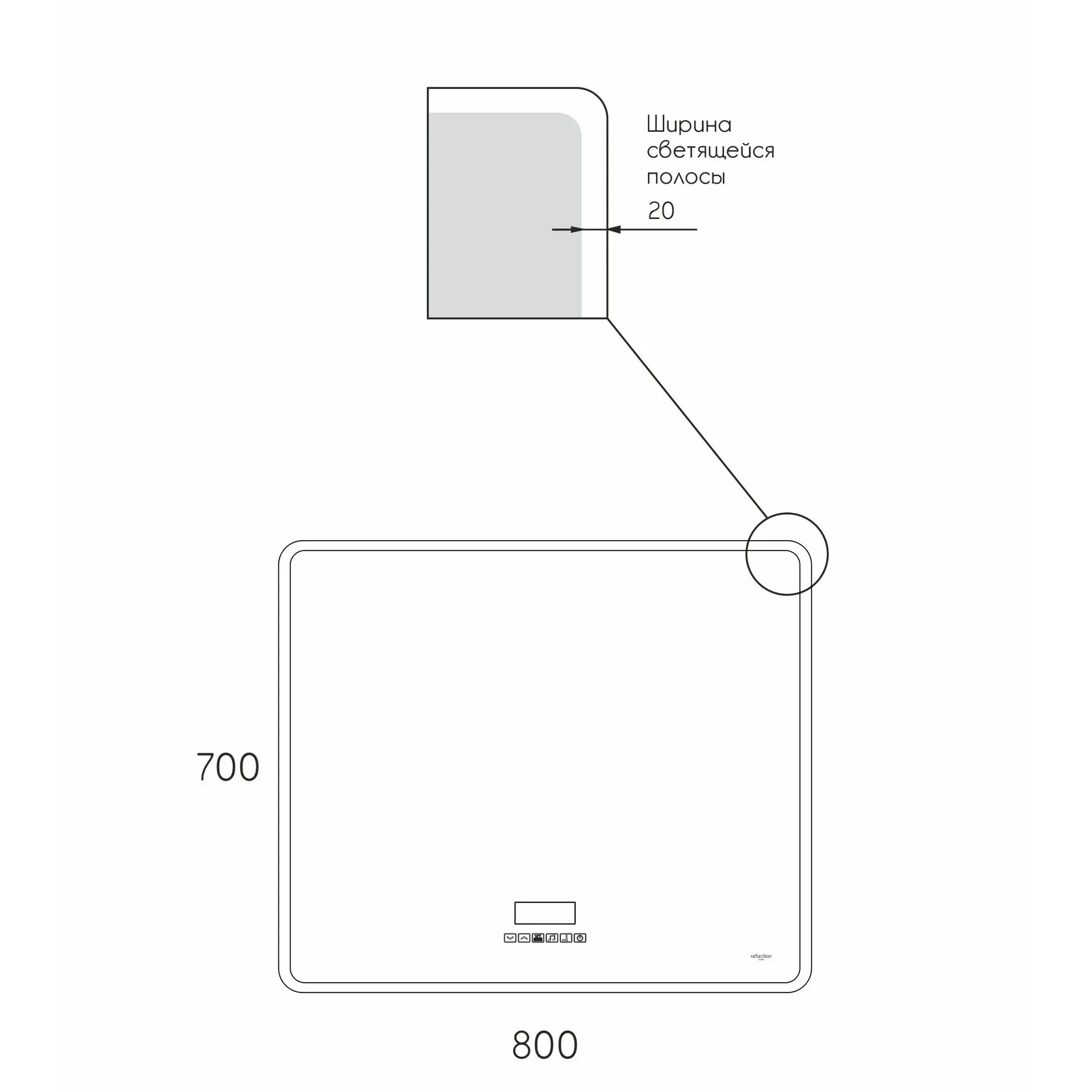 Предлагаем вашему вниманию зеркало с LED подсветкой, медиасистемой с Bluetooth, FM приемником часами, термометром и системой антипар Reflexion Party 800х700