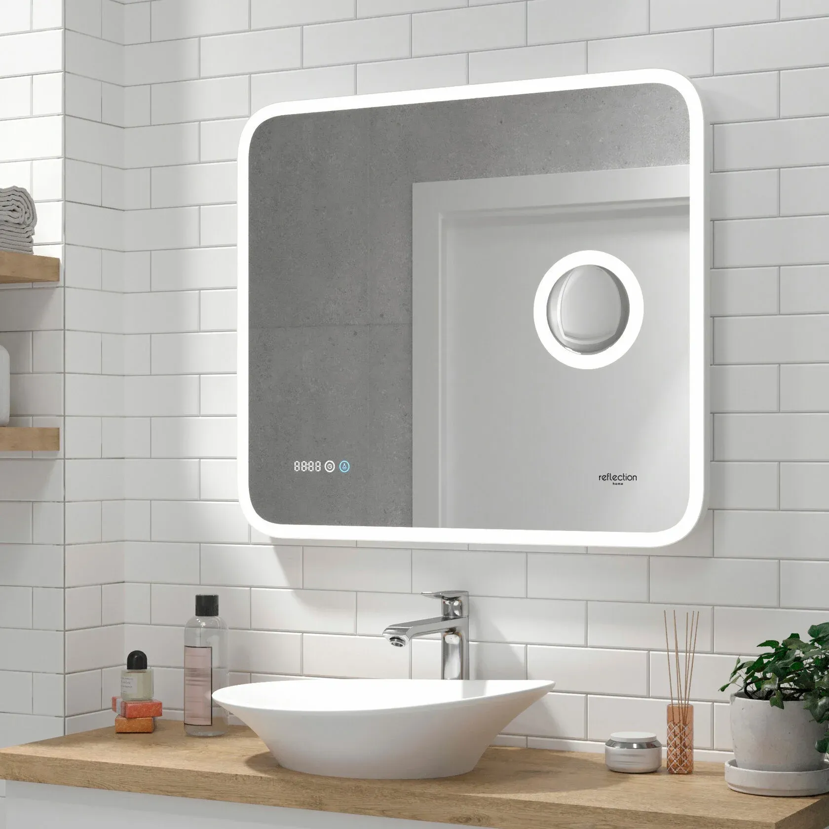 Зеркало Reflexion Point RF4513PT с LED подсветкой сенсором увеличительным зеркалом и часами 80х70 купить