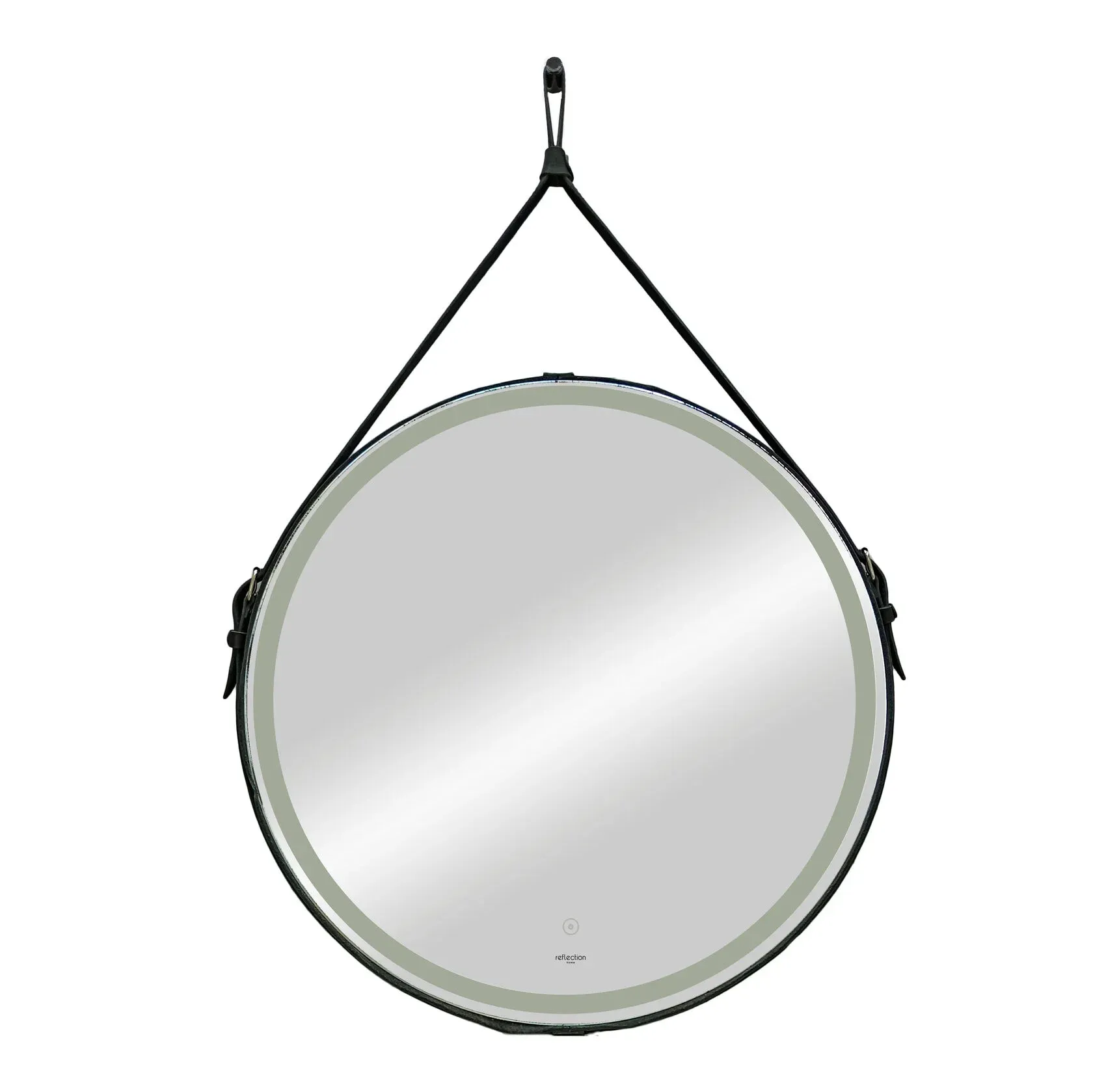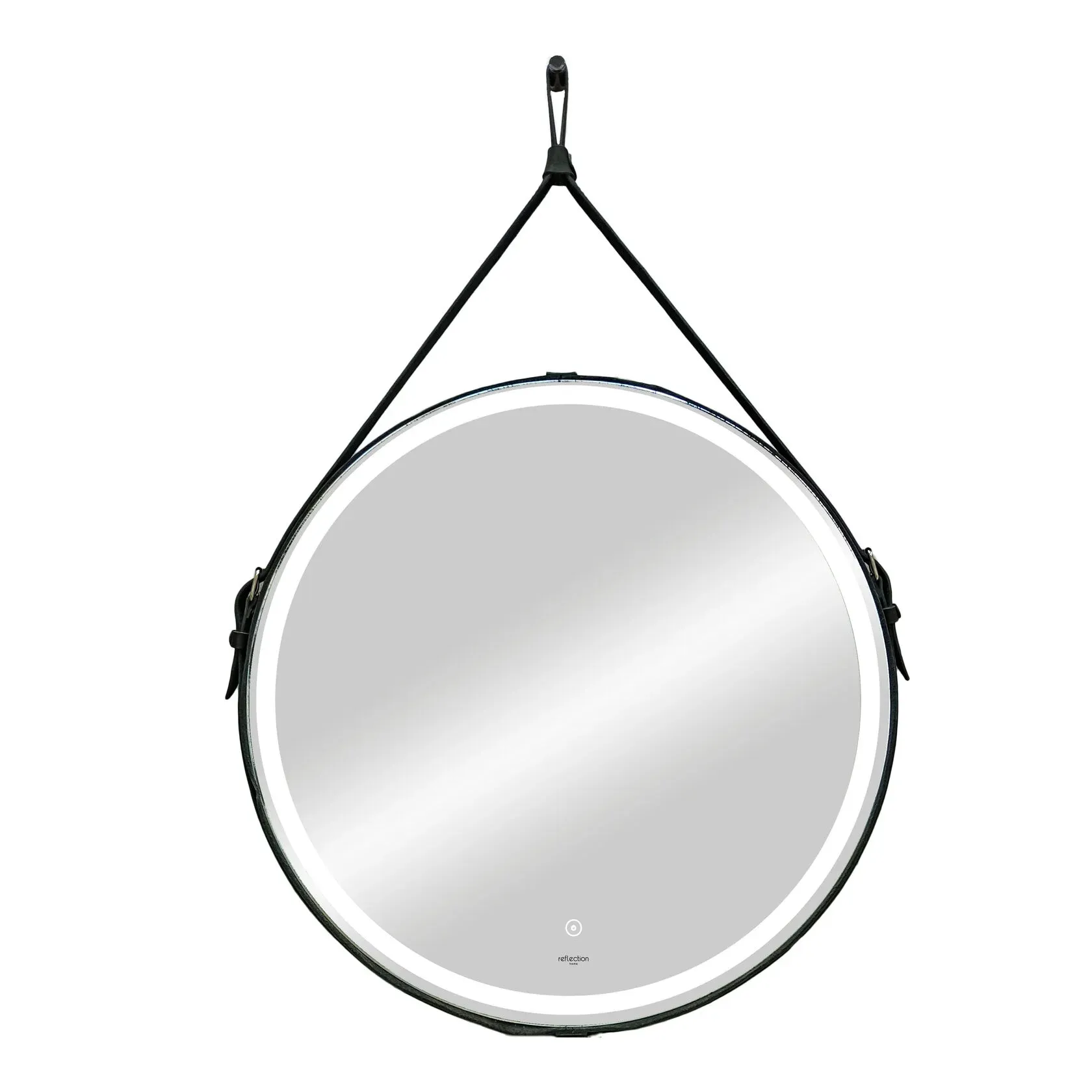 Зеркало Reflexion Skin RF5325SK с LED подсветкой сенсором на ремне из натуральной кожи черного цвета 65х65