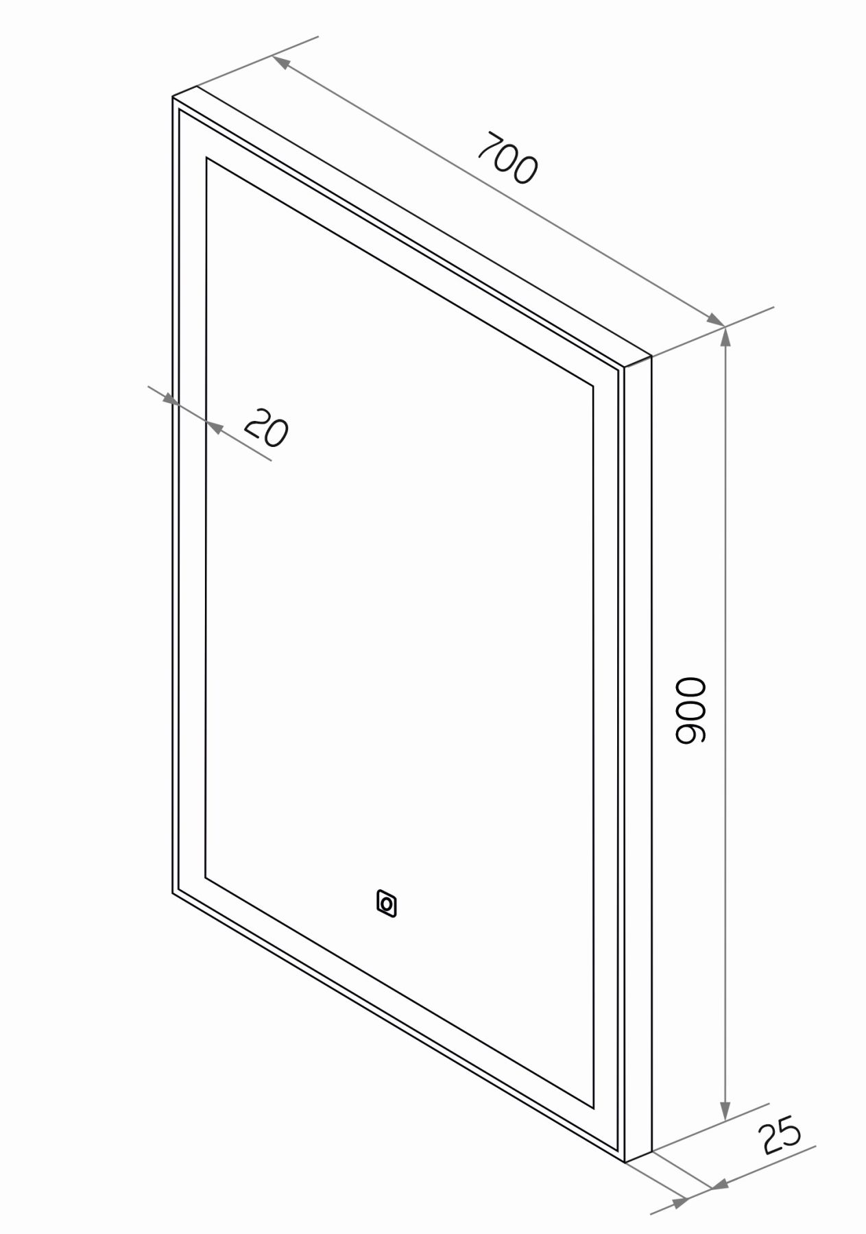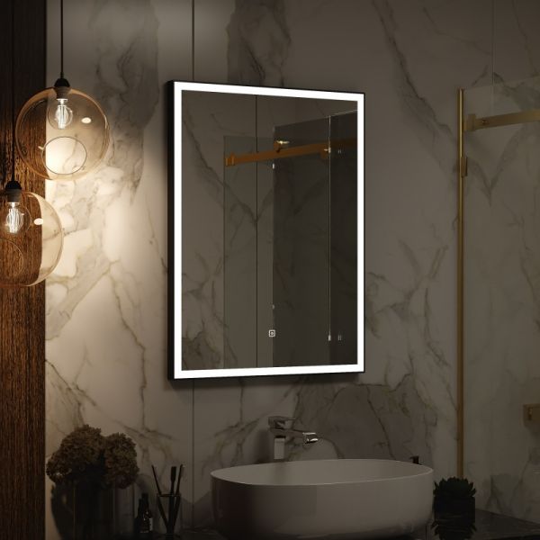 Зеркало "Frame Black LED" 700х900LED подсветка 6000Ксенсорный выключателькороб из алюминиевого профиля черного цвета