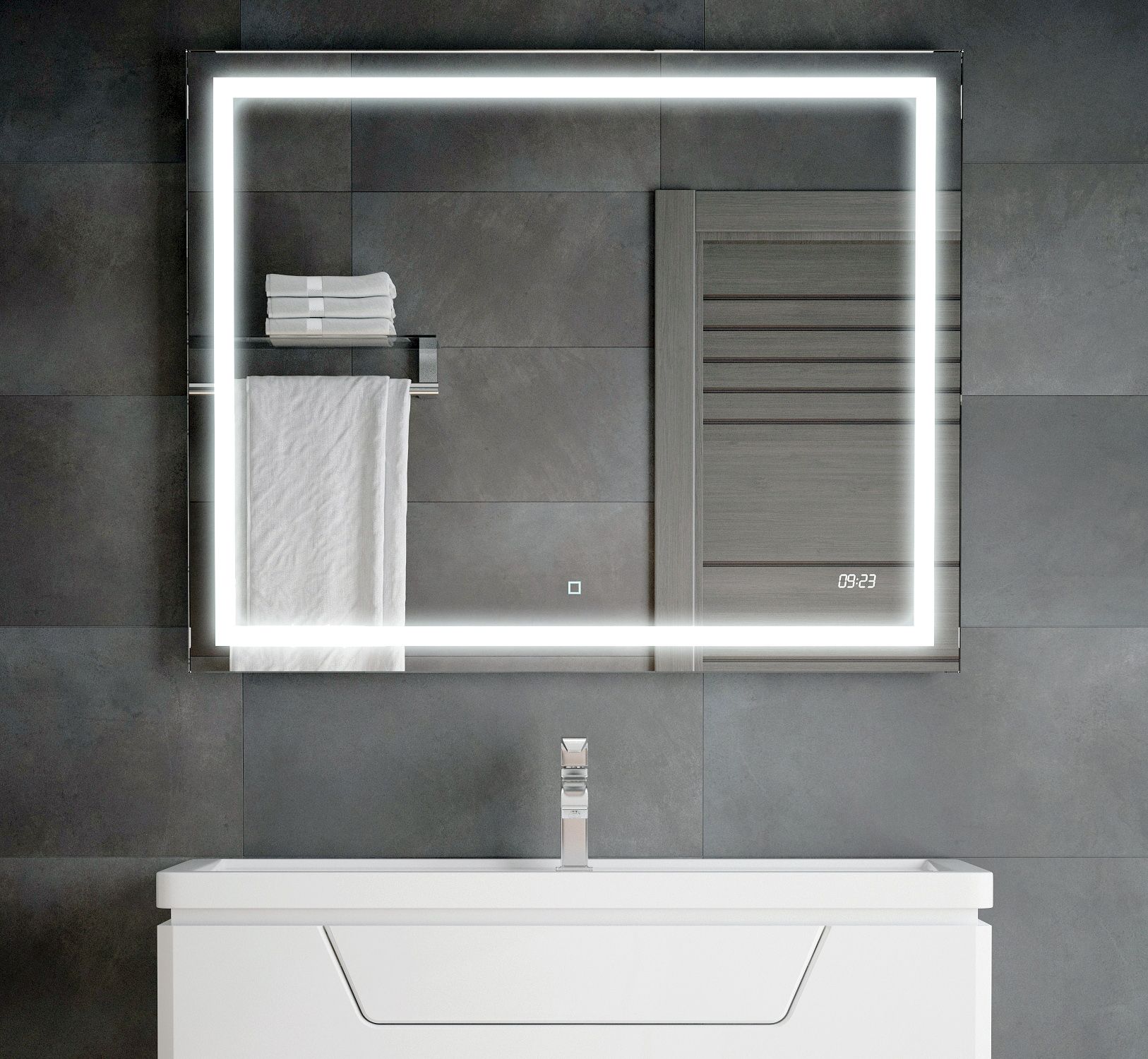 Зеркало с подсветкой Corozo Барго с часами 100см белый SD-00001187 купить