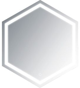 Зеркало "Теор" оснащено LED-подсветкой, сенсорным выключателем с регулировкой яркости. Класс защиты: IP67. Класс энергетической эффективности: A++. Серебряное зеркало, стекло высшего качества M1, 6 граней. AC/DC трансформатор. Ширина 700, высота 800 мм. Правильный 6-гранник. С отступом 25 мм от края по всему периметру идёт область пескоструя шириной 25 мм. Подсветка этой области осуществляется при помощи нажатия кнопки. Существует возможность регулировки освещенности (делать подсветку ярче или темнее).