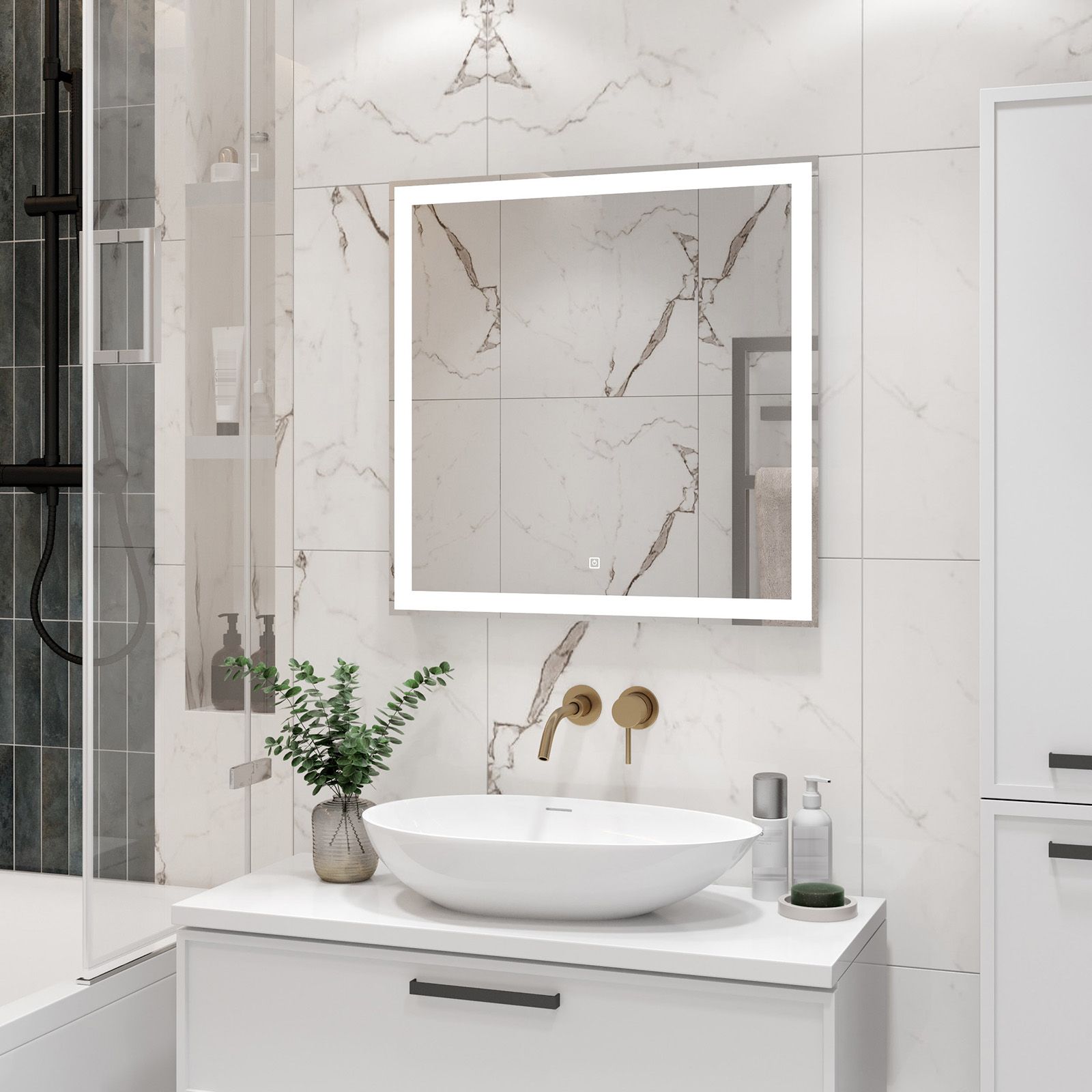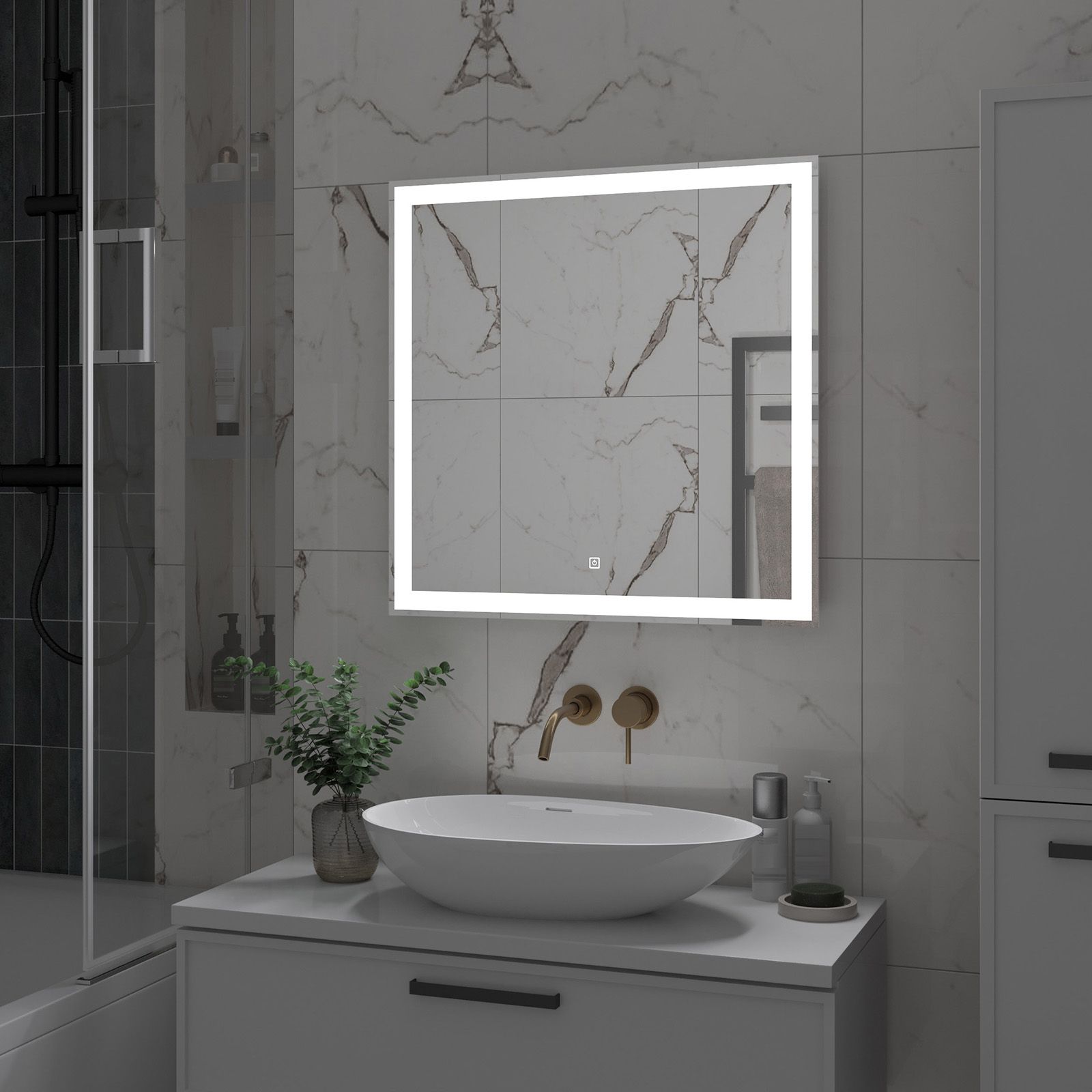 Зеркало с подсветкой для ванной комнаты — это элемент интерьера, который сочетает в себе функции, эстетику и современный дизайн. Его изящная форма и тонкие линии легко вливаются в любое пространство, создавая атмосферу утонченности и уюта.Интегрированная светодиодная подсветка обрамляет зеркало, даря мягкий, рассеянный свет, который не только позволяет удобно наносить макияж, но и наполняет ванную комнату теплом и позитивной энергией.Классический дизайн позволяет использовать его в различных стилях – от минимализма до современного эклектичного оформления. Оно прекрасно вписывается в любую цветовую гамму, будь то нейтральные тона или более яркие акценты.
