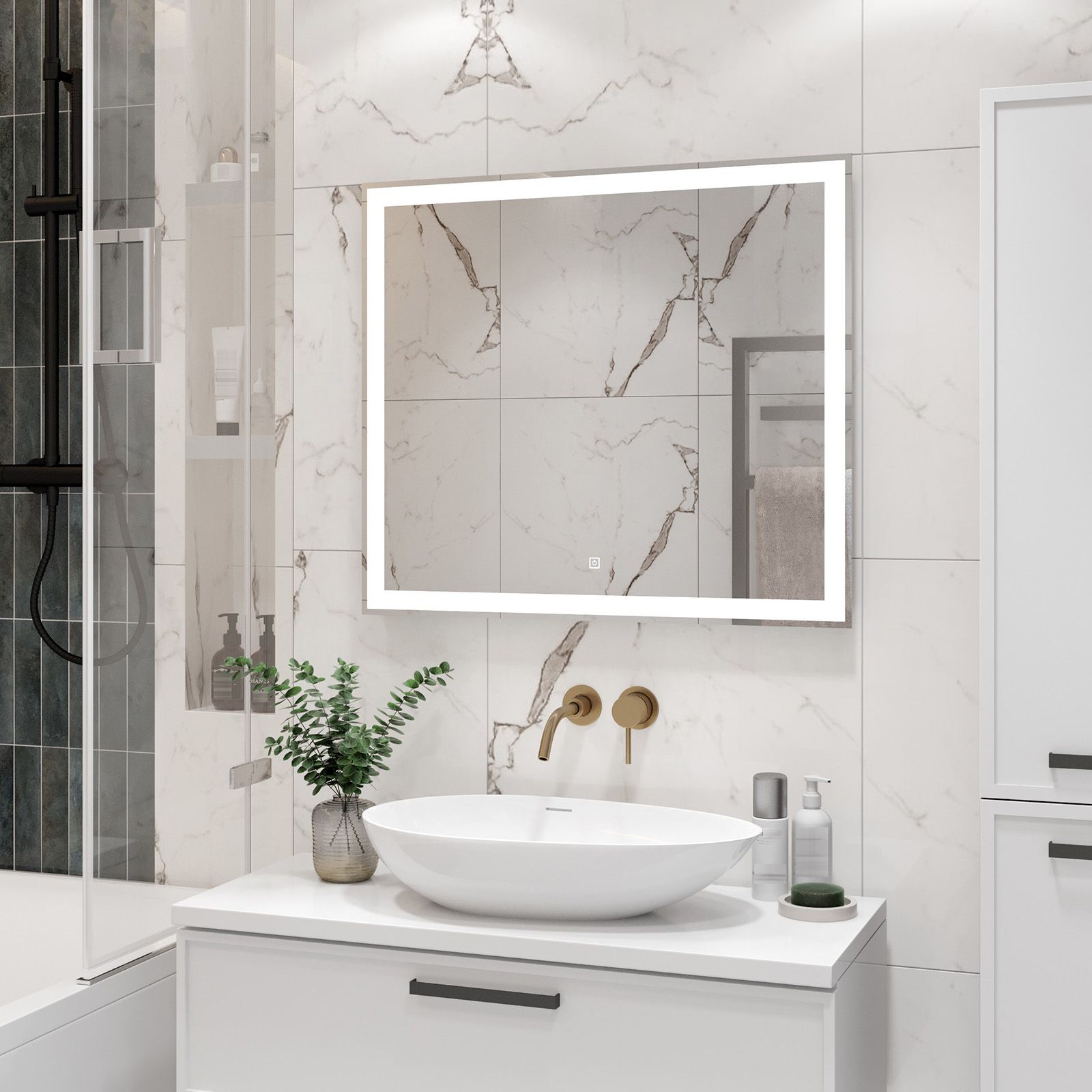 Зеркало с подсветкой для ванной комнаты — это элемент интерьера, который сочетает в себе функции, эстетику и современный дизайн. Его изящная форма и тонкие линии легко вливаются в любое пространство, создавая атмосферу утонченности и уюта.Интегрированная светодиодная подсветка обрамляет зеркало, даря мягкий, рассеянный свет, который не только позволяет удобно наносить макияж, но и наполняет ванную комнату теплом и позитивной энергией.Классический дизайн позволяет использовать его в различных стилях – от минимализма до современного эклектичного оформления. Оно прекрасно вписывается в любую цветовую гамму, будь то нейтральные тона или более яркие акценты.