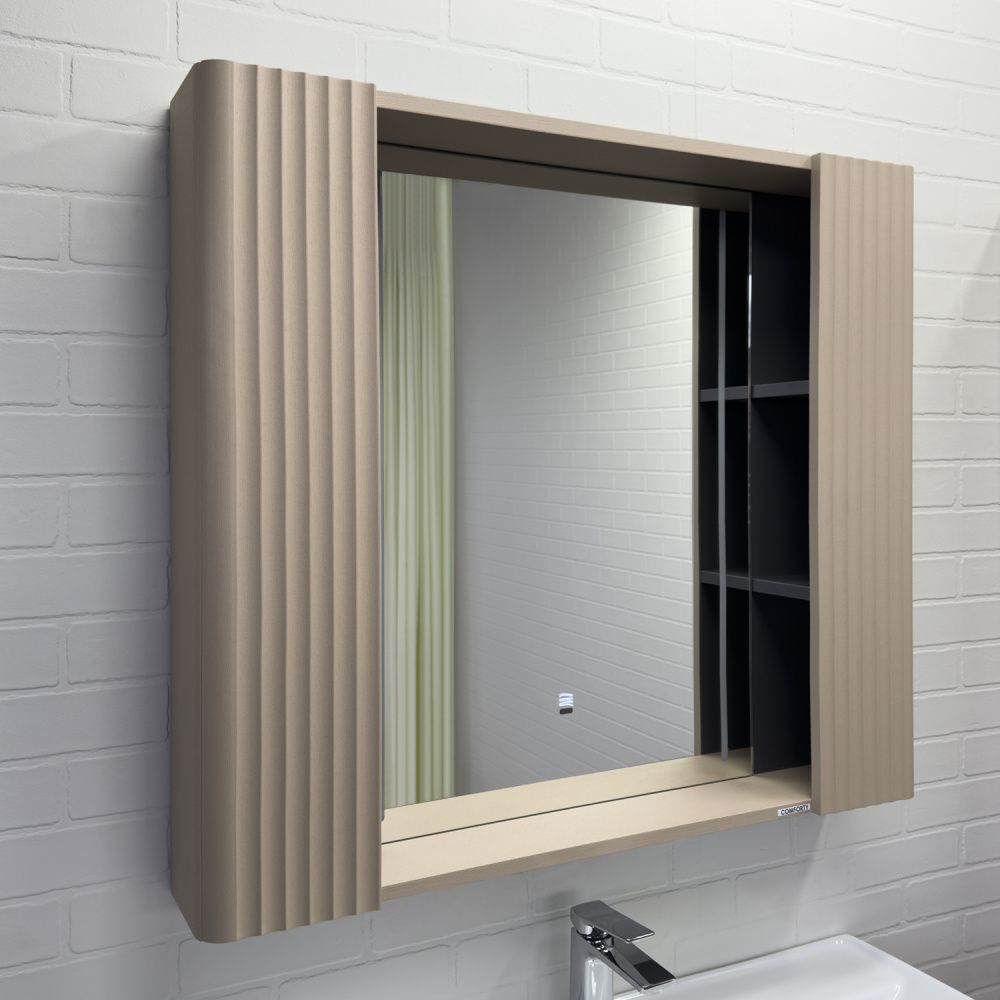 Зеркало-шкаф Comforty Ангара-90 дуб латте с LED подсветкой и антизапотеванием купить