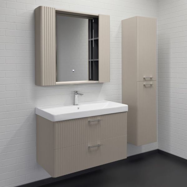 Зеркало-шкаф Comforty Ангара-90 дуб латте с LED подсветкой и антизапотеванием