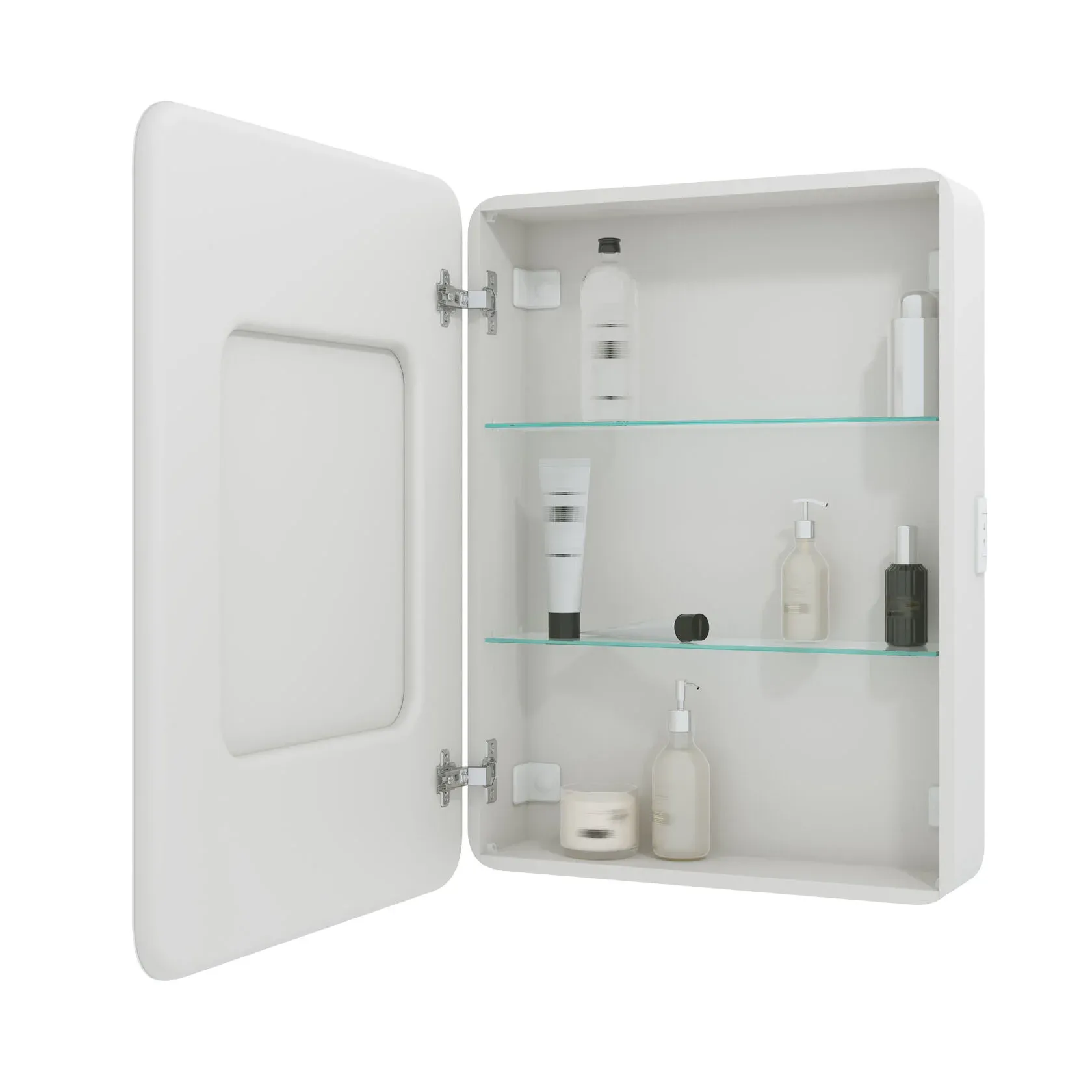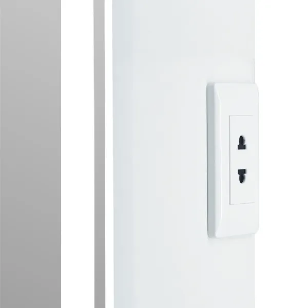 Стеклянные полки легко регулируются по высоте, а розетка позволит удобно использовать электроприборы. Хромированные крепления не ржавеют при длительной эксплуатации в условиях повышенной влажности. Защита по стандарту IP44 обеспечивает безопасное использование устройства в условиях повышенной влажности