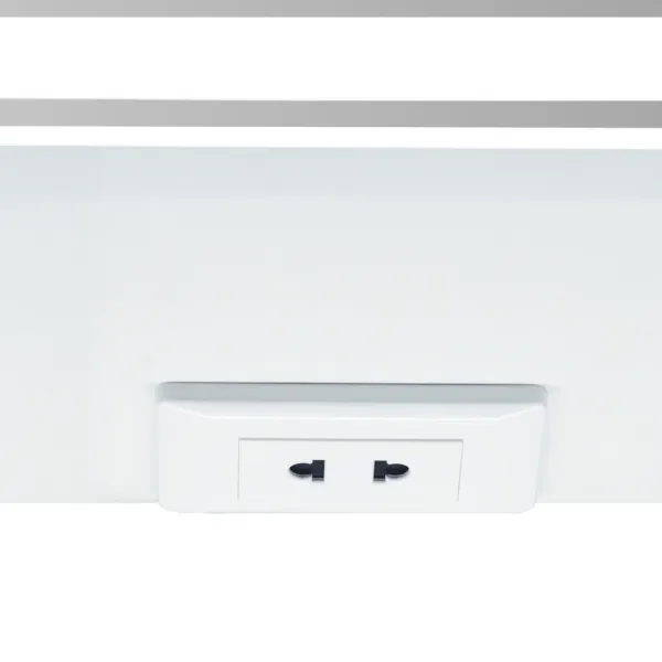 Стеклянные полки легко регулируются по высоте, а розетка позволит удобно использовать электроприборы. Хромированные крепления не ржавеют при длительной эксплуатации в условиях повышенной влажности. Защита по стандарту IP44 обеспечивает безопасное использование устройства в условиях повышенной влажности