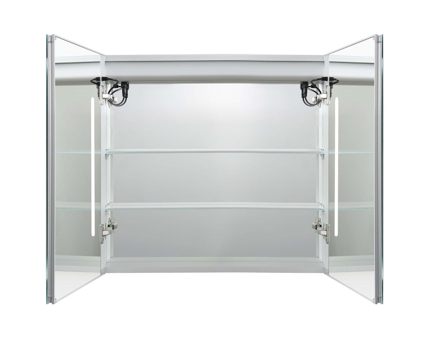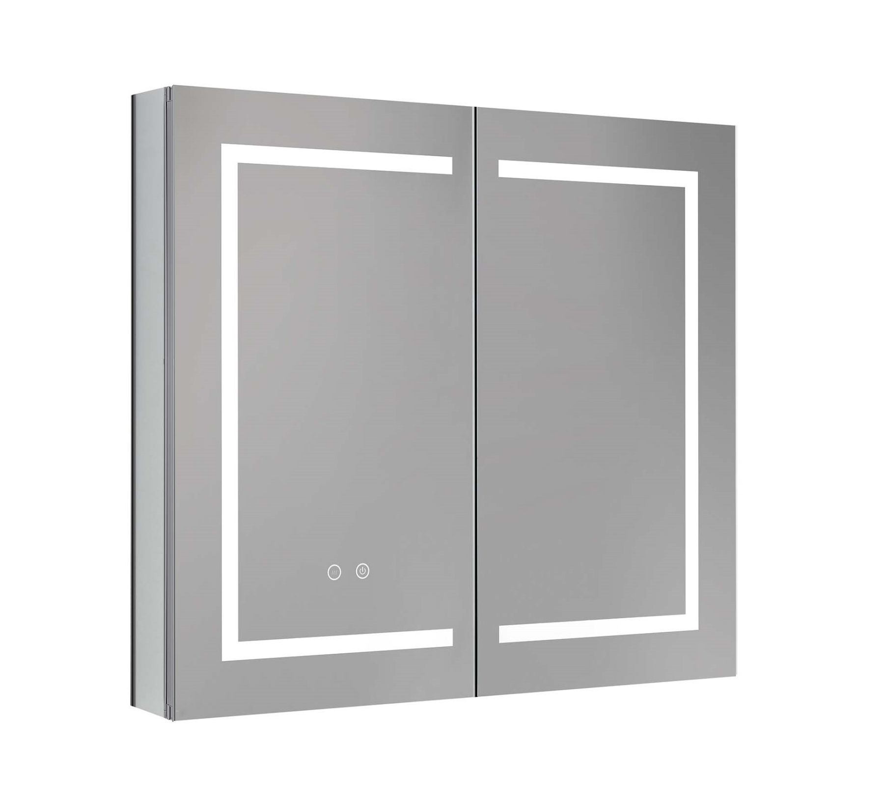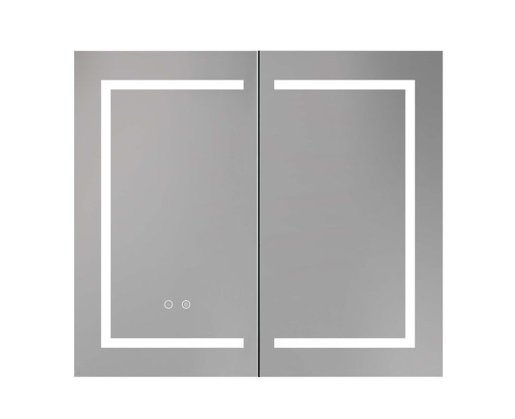 Габариты (Д В Ш), мм: 800*700*133Алюминиевый зеркальный шкаф с подсветкойФорма: прямоугольнаяМонтаж: подвесной, монтируется на поверхность или в нишуДве зеркальные дверцы шириной 39,85см. Двусторонние зеркальные двери и зеркальные боковиныДве стеклянные полки 8 мм.Материал: алюминийЦвет: хромЗеркальный салонКруговая подсветка SMD 2835-120P, цветовая температура 2500K/6500KФункция антизапотевания2 режима переключения света/ цветаСенсорное управлениеС механизмом доводчика, обеспечивающим плавное закрываниеМебель поставляется в собранном видеДополнительное оснащение зеркала: подвесыГарантия: 1 год