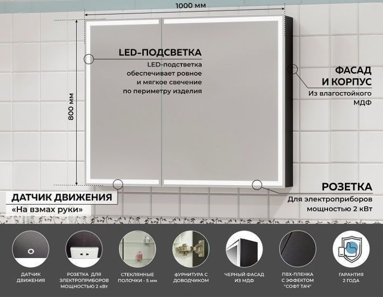 Тип:зеркало-шкаф с подсветкой