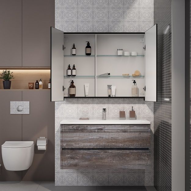 Зеркало-шкаф с подсветкой Art&Max Techno 100см чёрный матовый AM-Tec-1000-800-2D-F-Nero купить