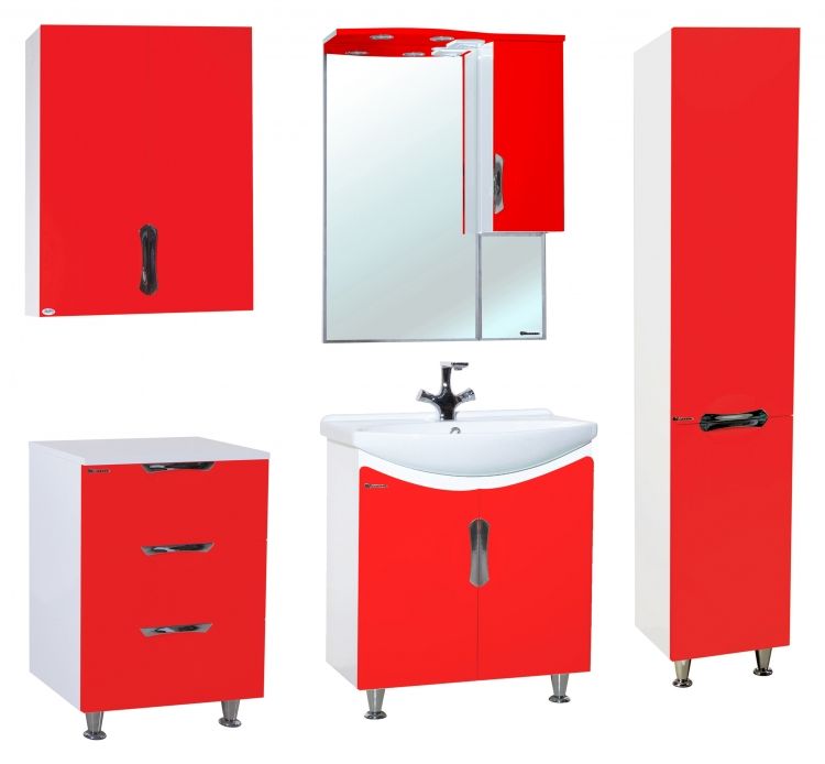В производстве используют только качественные влагостойкие материалы (ВЛДСП), в составе которых полностью отсутствуют опасные вещества. Данная серия выполнена в эксклюзивном дизайнерском решении в лучших традициях современного стиля. Красный, основной цвет исполнения Bellezza, гармонирующий с большинством интерьерных решений. Шкаф-зеркало предусматривает удобную и вместительную систему хранения. Зеркало Bellezza оснащено галогеновой подсветкой, позволяющей комфортно провести утренние процедуры.
