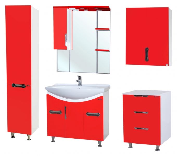 В производстве используют только качественные влагостойкие материалы (ВЛДСП), в составе которых полностью отсутствуют опасные вещества. Данная серия выполнена в эксклюзивном дизайнерском решении в лучших традициях современного стиля. Красный, основной цвет исполнения Bellezza, гармонирующий с большинством интерьерных решений. Шкаф-зеркало предусматривает удобную и вместительную систему хранения. Зеркало Bellezza оснащено галогеновой подсветкой, позволяющей комфортно провести утренние процедуры.