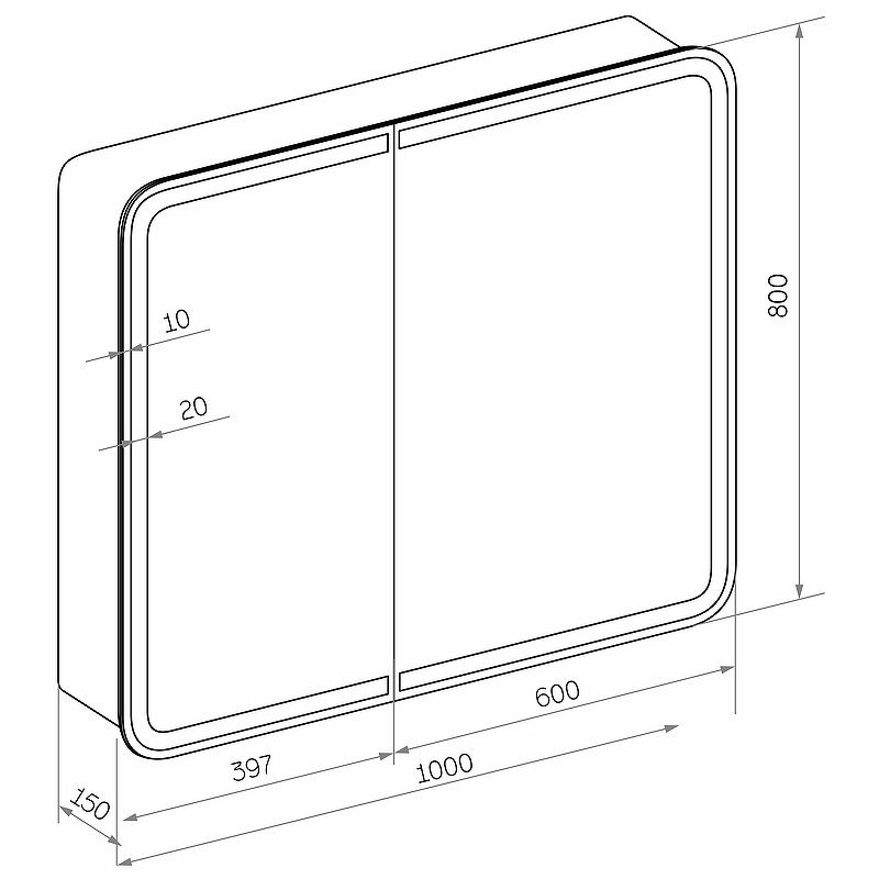 Зеркало-шкаф "Elliott LED" 1000х800 с датчиком движения, розеткойLED подсветка 6000К; датчик движения, Материал корпуса - МДФ в пленке ПВХ, розетка, две створки